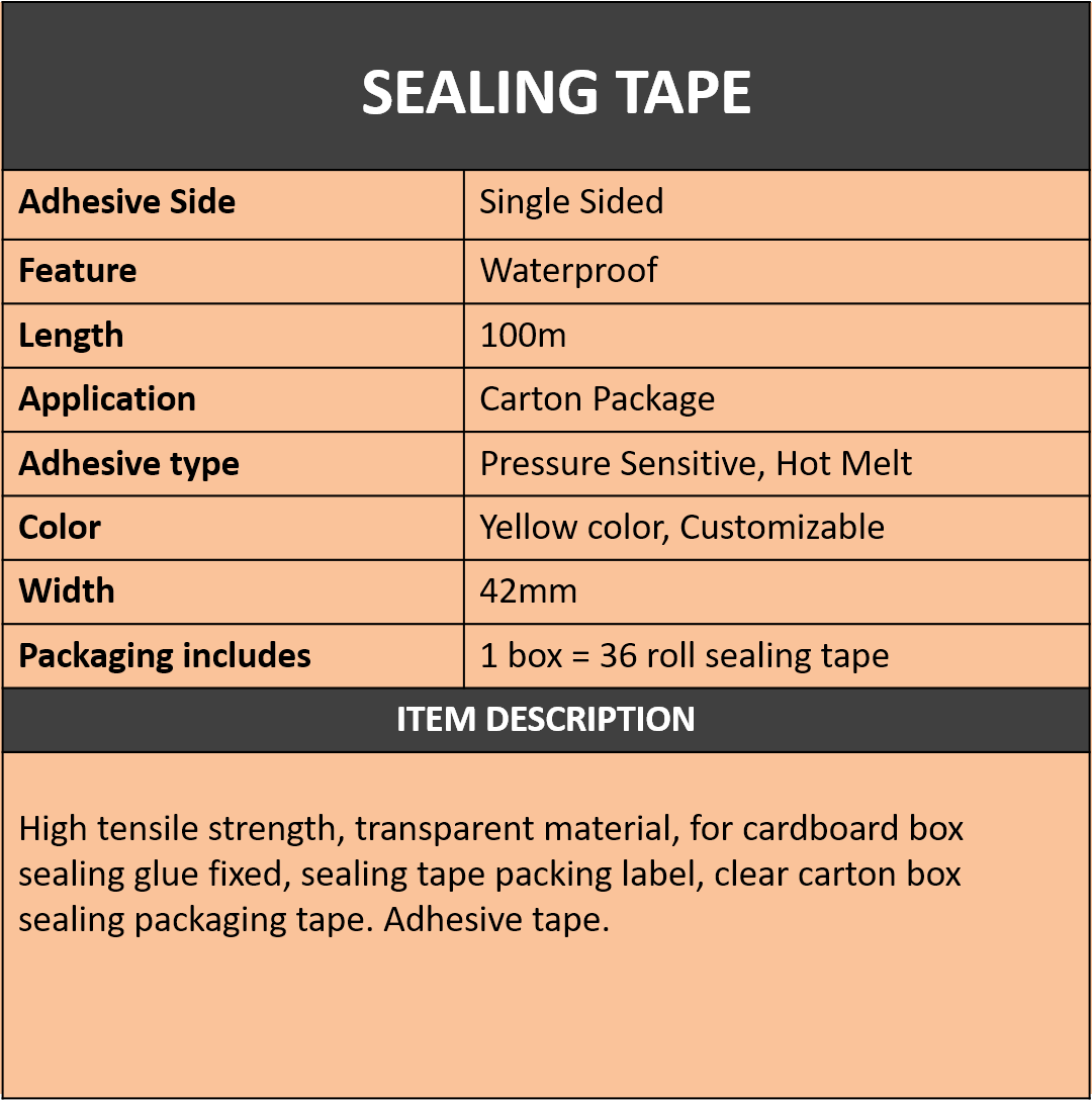 Packaging Includes: 1 box = 36 roll sealing tape